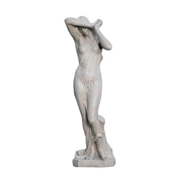 Phryne, a 4th century Green courtesan, was acquitted at her capital offense trial after her lawyer partially opened her robe to reveal her body's stunning beauty. This exquisitely balanced sculpture depicts the exquisite maiden shielding her eyes from the judges. Cast in quality designer resin with a faux stone finish to capture each detail, this grand-scale Design Toscano exclusive lends grace and history to home or garden. 12 in. W x 11 in. D x 43.50 in. H, 21 lbs.