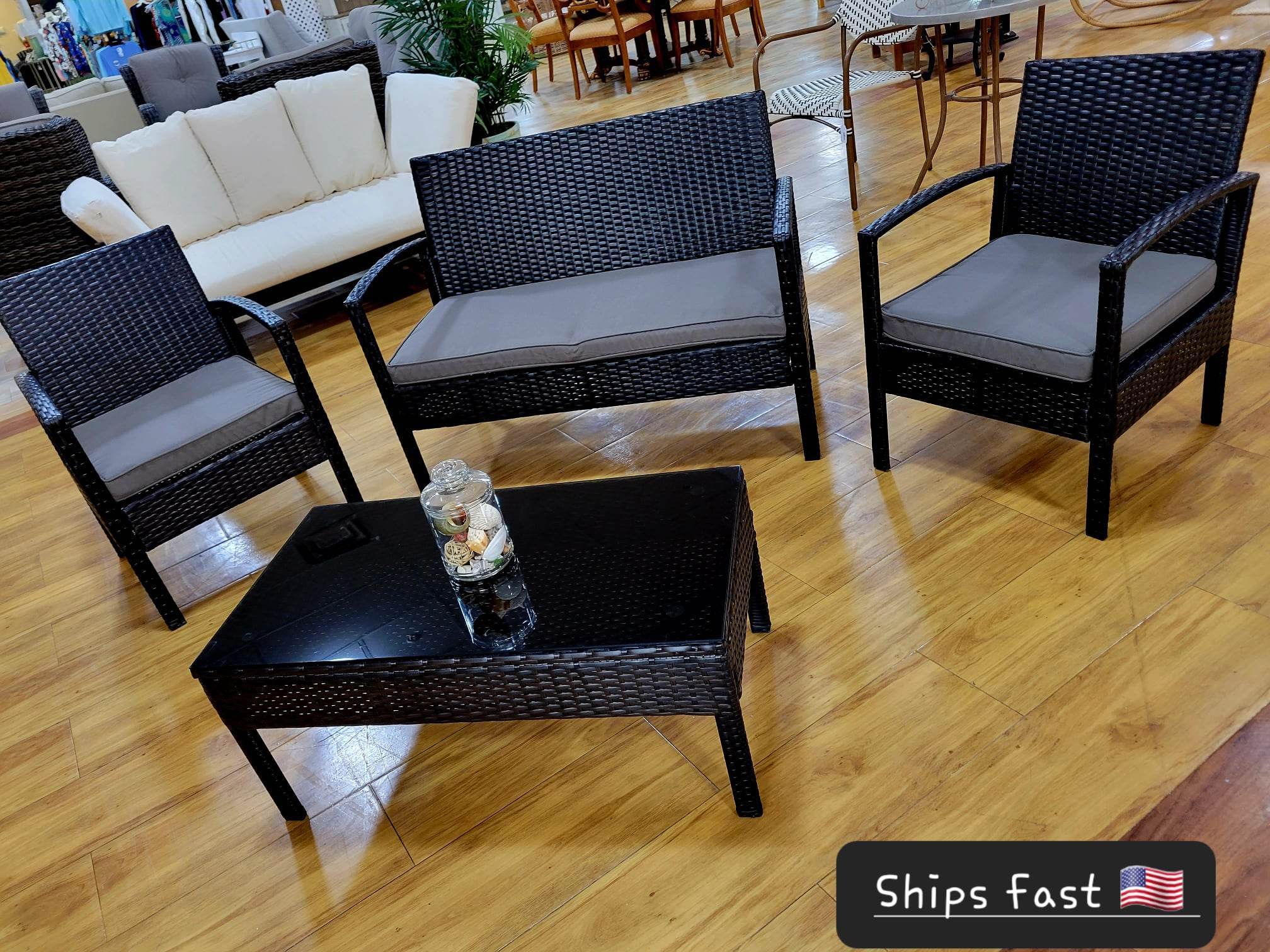 Including 1 loveseat, 2 single sofas and 1 table for a versatile use