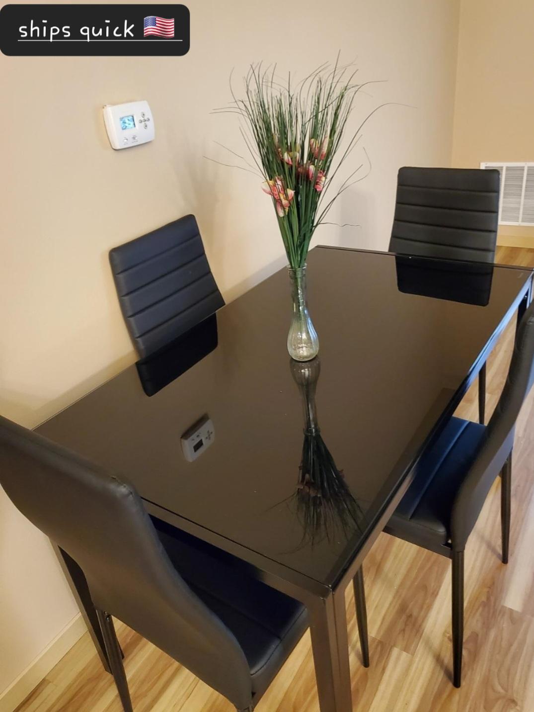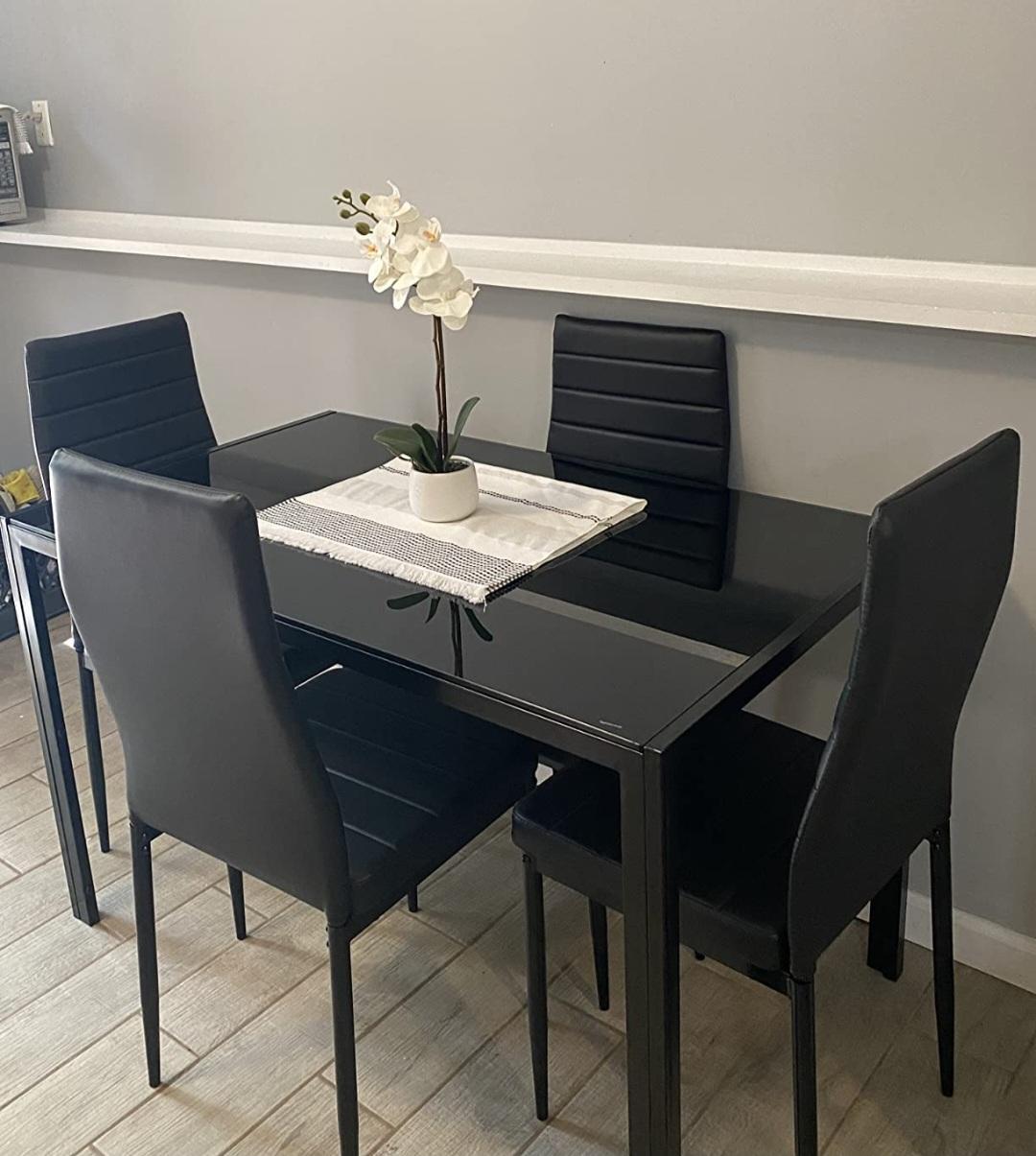 Great importance should always be attached to the meals that provide basic nutrition and calories to support our body to be functional. Hence, a delicate and carefully selected dining set is an indispensible part in terms of necessity. It not only brings much convenience to the daily life, but also makes you enjoy a happy dining time with your family members. Its modern and simple design demonstrates that this set is perfectly compatible with the majority of home decorations. Made of tough metal material, the whole set is durable and practical. In addition, the high back chairs cannot wait to provide unexpected comfort to you.