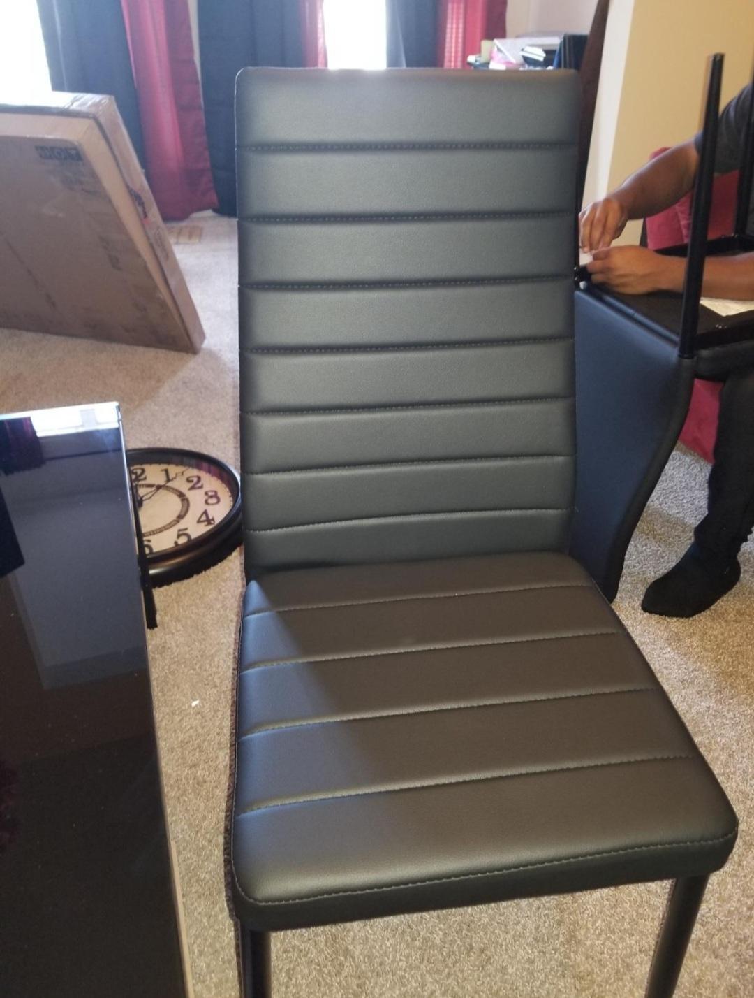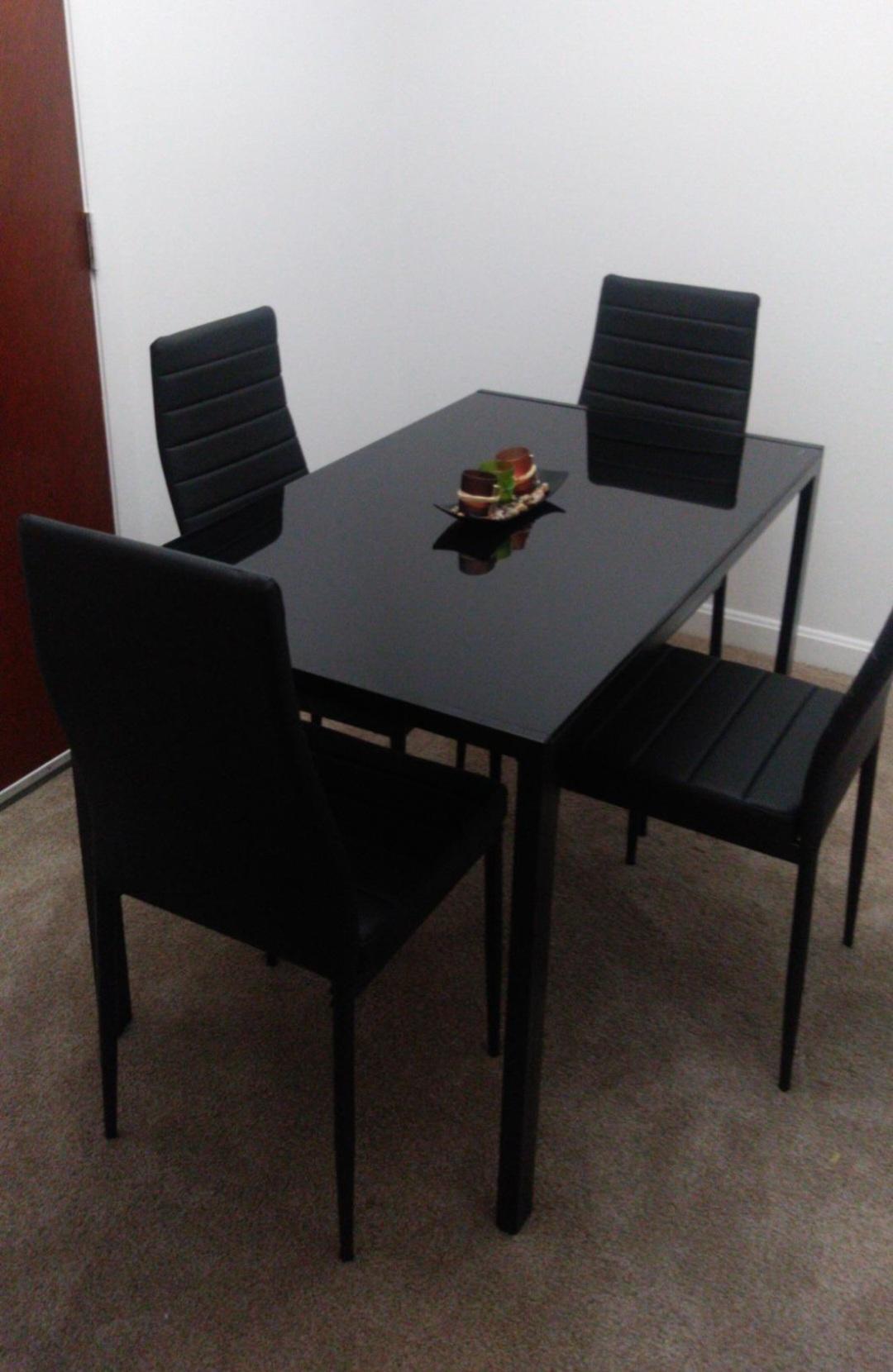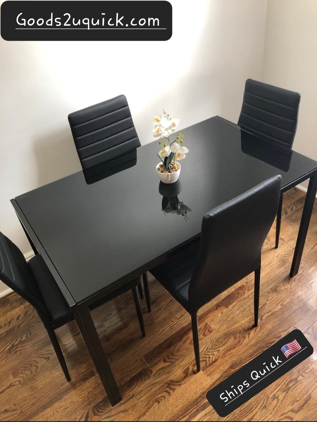This 5 pieces dining set including one table and four chairs is ideal for home use with its modern, simple and practical design.The product is packed in two packages.