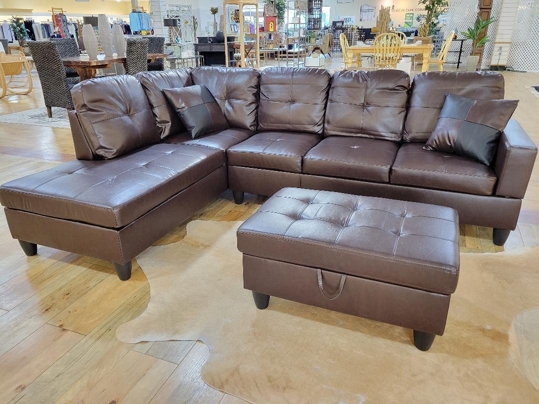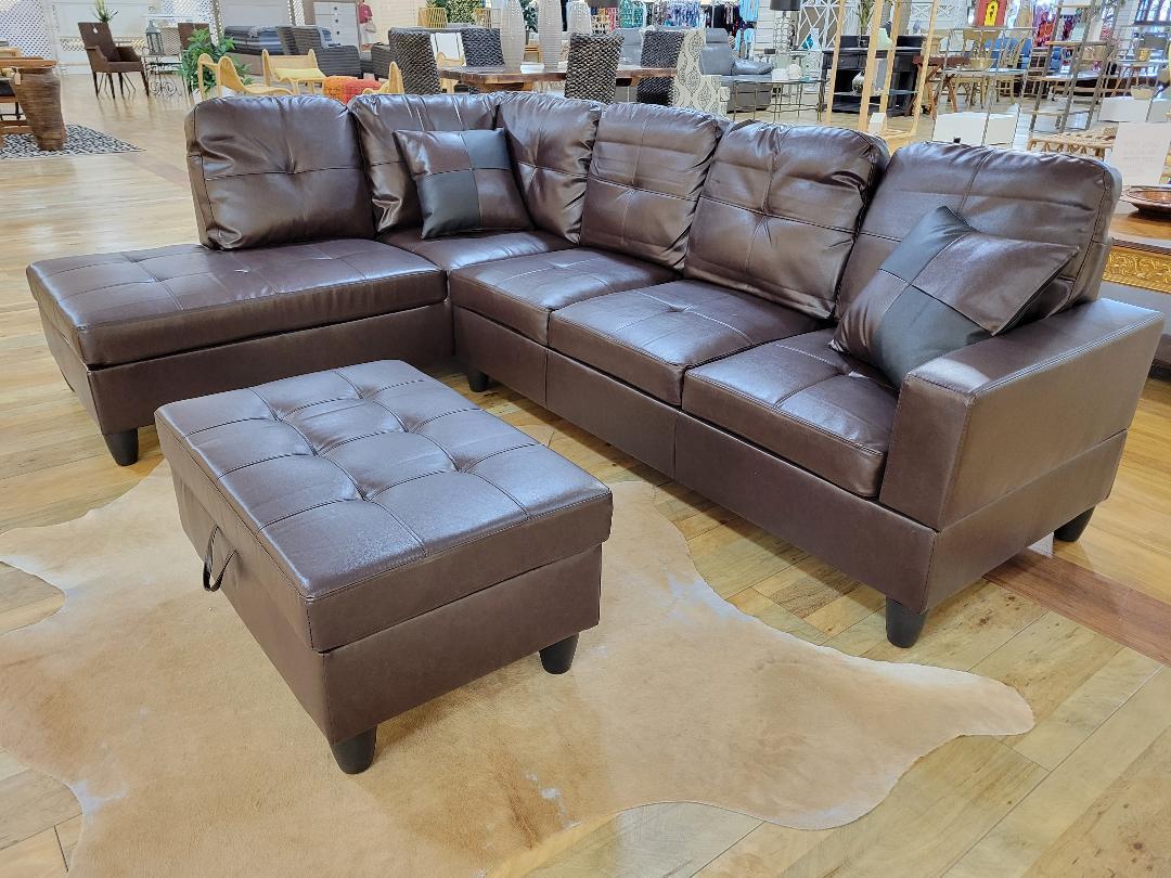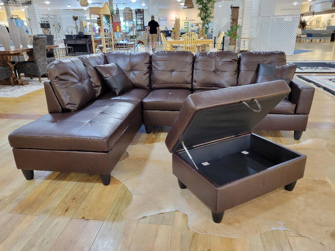 Add a bit of class and comfort to your home with this elegant sectional. The all-purpose ottoman comes with a storage compartment, adding convenience to this chic design. Attractive and cozy, this sectional will make the perfect addition to your den or living room.