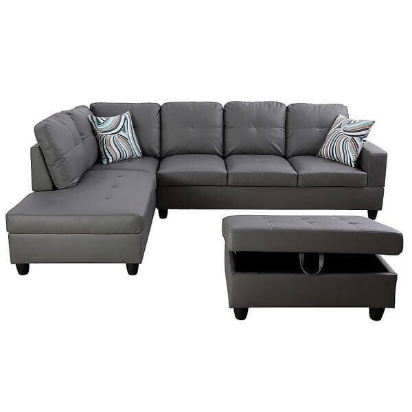 Living-3-Piece-Gray-Faux Leather-6 Seats-L-Shaped-Left Facing-Sectionals