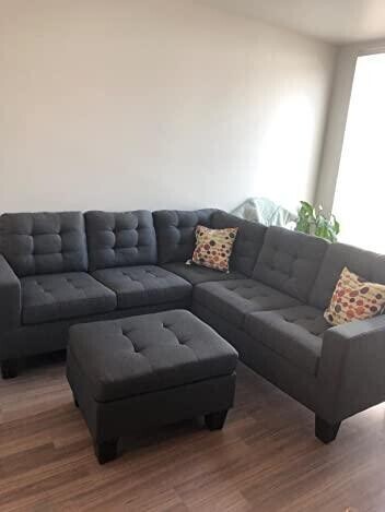 Best Seller, Home Condo Living Room Classic Sofa Chaise Couch Sectional with Ottoman, Grey