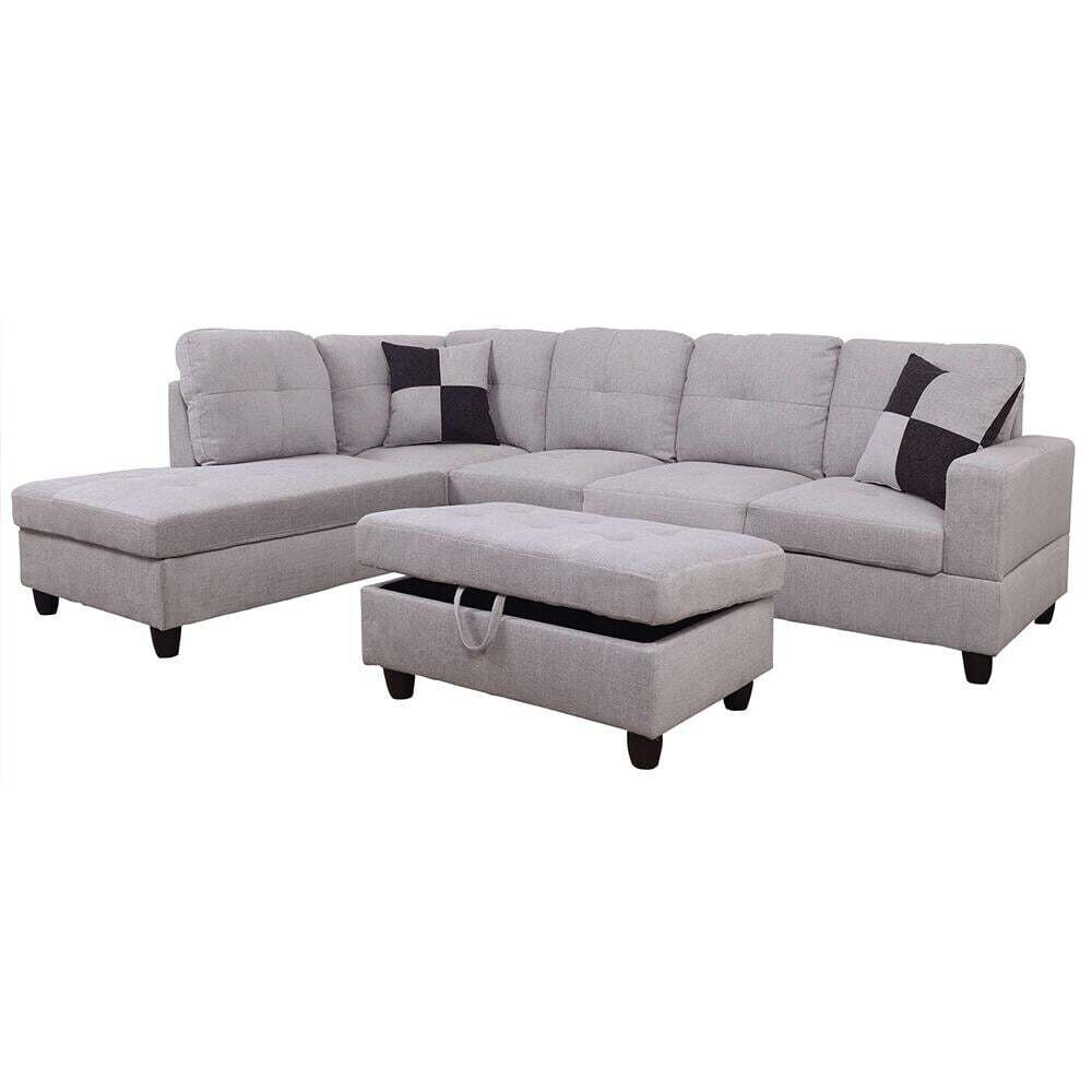 Gray Modern 3pcs Sectional Sofa Comfort Couch Pillows Ottoman Linen Fabric