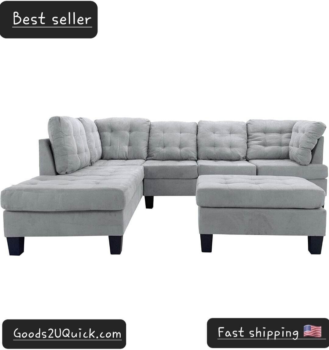 3 Piece Modern Tufted Micro Suede L Shaped Sectional Sofa Couch with Reversible Chaise & Ottoman