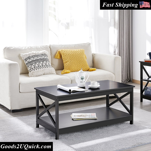 Easyfashion Transitional Wooden X-Design Coffee Table with Storage Shelf, Black: