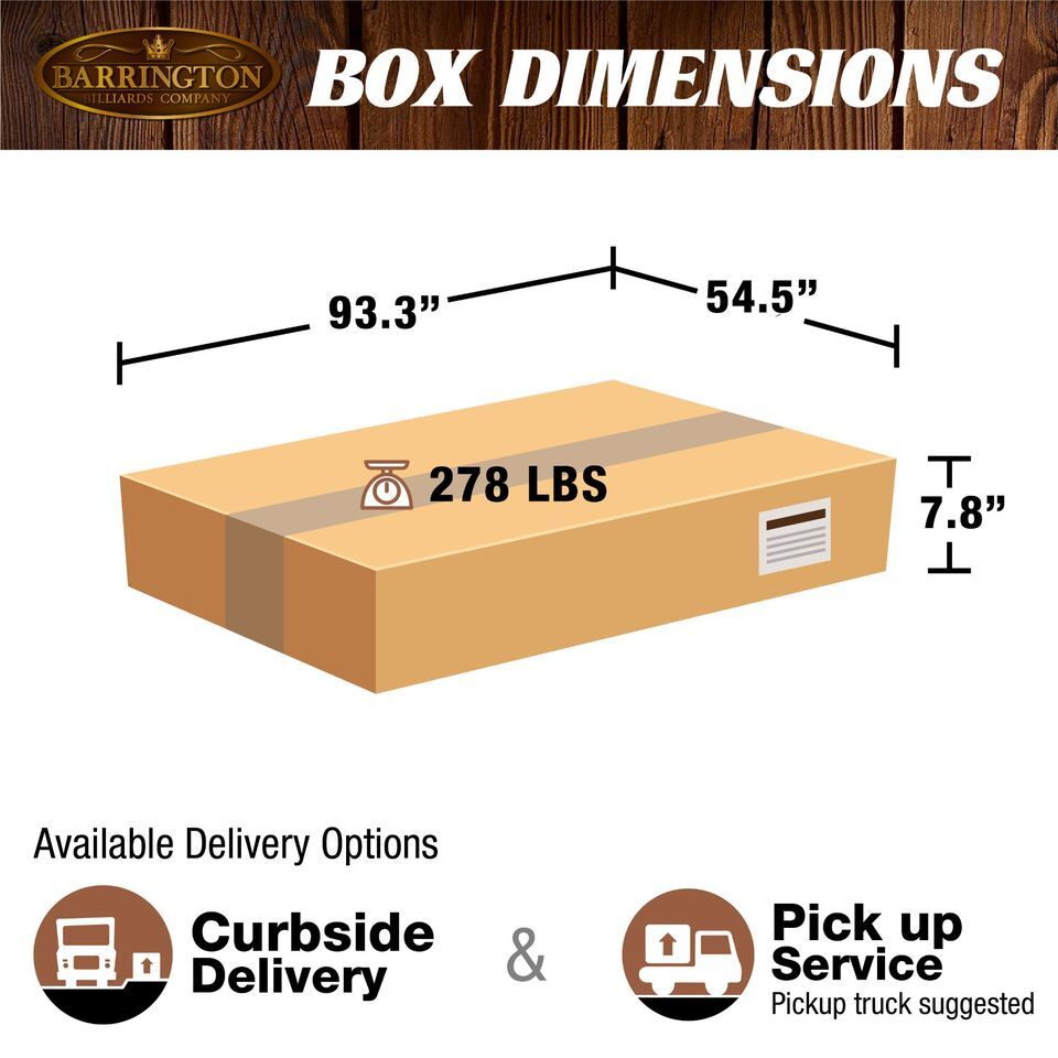 Beautiful styling and precision performance spotlight this Barrington Billiards Ball and Claw Leg 90" Pool Table with Cue Rack and Dartboard Set. It features a high-quality, scratch-resistant rail coating which improves the durability and longevity of the table. The genuine K-818 specification bumpers and 3/4 inch reinforced play surface offer a consistent ball bounce and roll with every game.