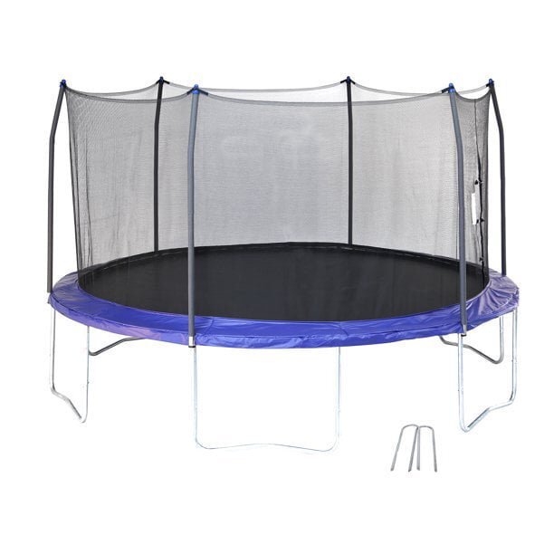 Includes: Trampoline, jump mat, spring pad, springs, enclosure, hardware, assembly tools, spring hook, manual, two 12.5" long wind stakes