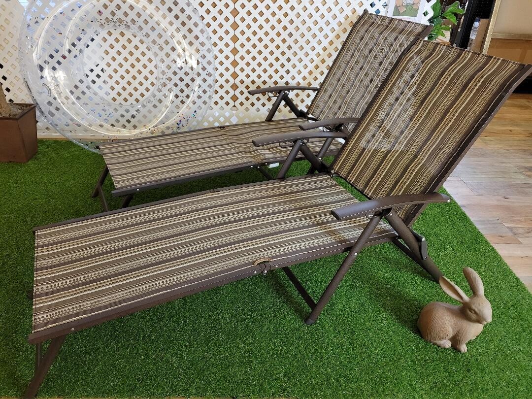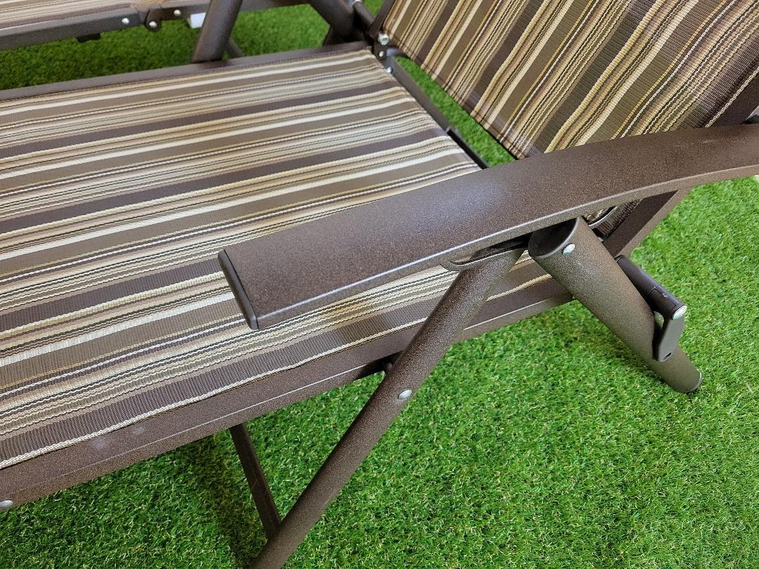 Invite a friend over to kick back and relax on the fair park sling folding chaise lounge chair. Crafted with a powder-coated black finish on a durable steel frame, this set of two loungers create the perfect place for two people to relax in the sun by the pool, on the patio, porch, deck, in your garden, and more. The loungers feature adjustable backs to provide just the right amount of comfort whether sitting up or laying down as you read, tan or simply relax. Each fair park sling folding chaise lounge chair has two sturdy arms and breathable fabric for improved comfort on hot summer days. Available in tan and gray and brown and gray.