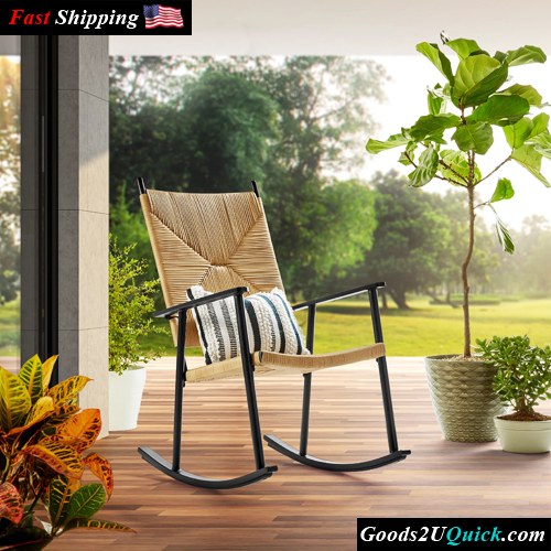 Better Homes & Gardens Ventura Outdoor Steel Rocking Chair, Natural Rush Weave