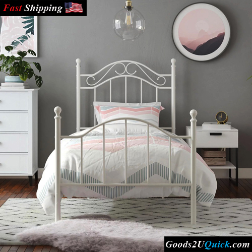 Looking to spruce up your bedroom décor and give it a quick and easy makeover? The Twin Metal Bed lends itself to a traditional style with its curved lines and scrolled metalwork that is perfect to add some character to bedrooms of any aesthetic. With its white powder finish and versatile design, it mixes beautifully with a wide range of furnishings and decor. The bed comes complete with a headboard, footboard, side rails, slats and center legs to provide long-lasting support and durability to ensure that this bed frame stays in your home for years to come. The Twin Metal Bed is a practical space saving solution for small bedrooms and is appropriate for your master bedroom, guest bedroom and teen’s bedroom. This bed frame accommodates a standard twin size mattress and foundation or box spring (sold separately). Ships in one box. Assembly required, hardware included. 1-year limited warranty.