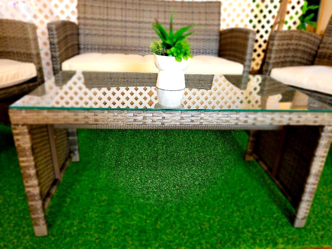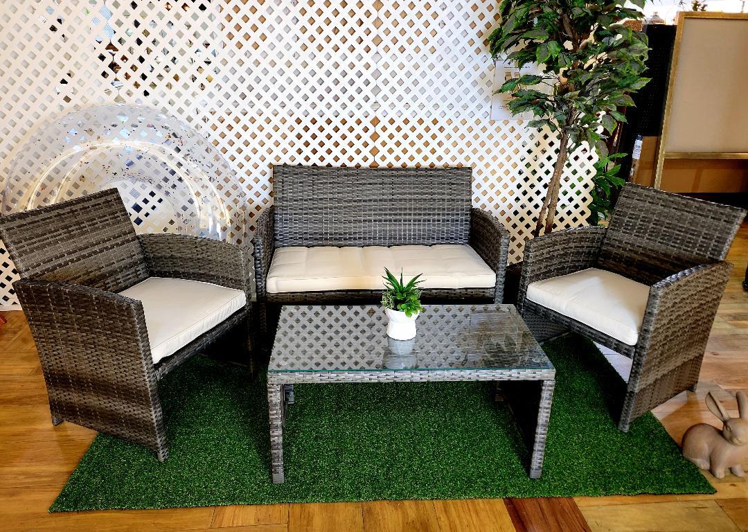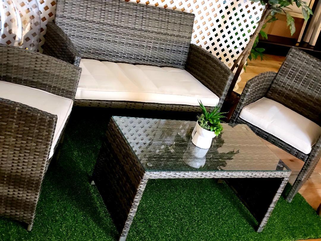 Enjoy our featured 4 piece cushioned patio set, which is of contemporary looks and flavor, offers comfortable and exceptionally stunning outdoor lounging. What is more, the table features a tempered glass top. It is perfect for the poolside, deck, or patio, these cushioned seats will let you and your guests sit back, relax and enjoy the great outdoors.